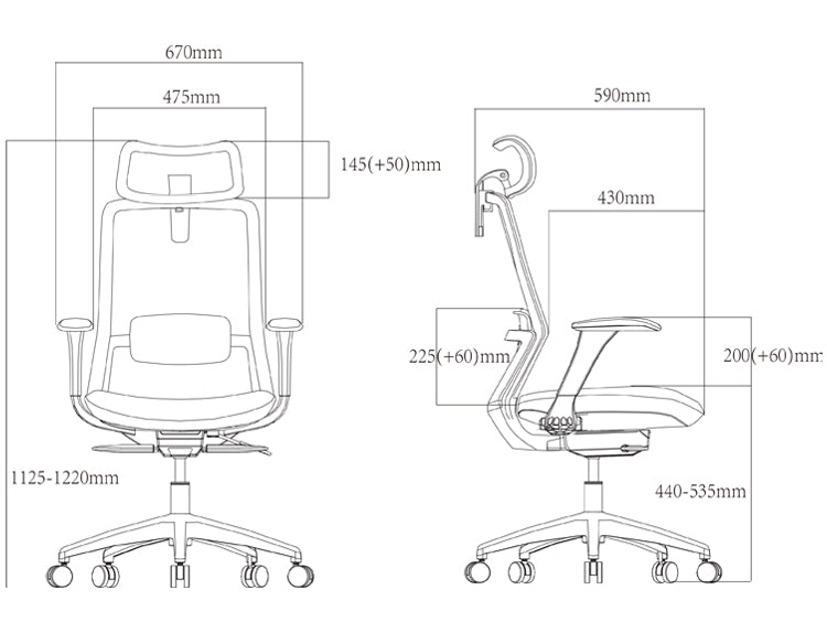 | Височина на облегалката за гърба (с облегалка за главата): | 710 - 770 мм |